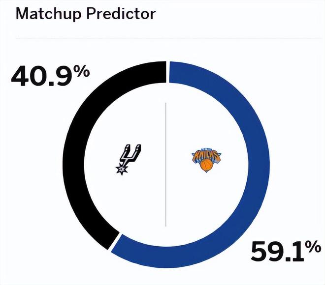 賽前,美媒ESPN對本場比賽進行了勝率預(yù)測,尼克斯勝率為59.1%,略占上風(fēng),馬刺隊勝率則僅有40.9%。 。