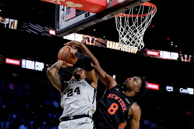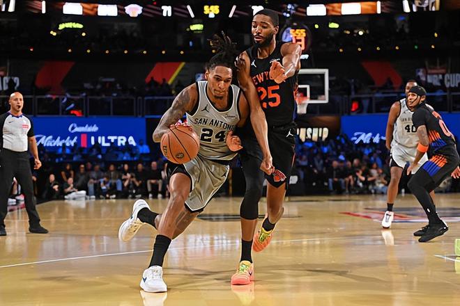 在此前的NBA杯決賽中,紐約尼克斯在末節(jié)完成了大逆轉(zhuǎn),以124比113戰(zhàn)勝了圣安東尼奧馬刺,成功拿到了本次NBA杯的總冠軍。